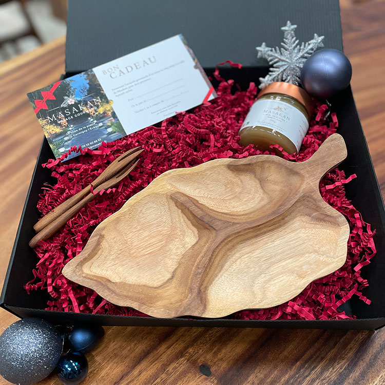 En cette saison des fêtes, plongez dans l’univers magique de Bali avec nos coffrets cadeaux en édition limitée. Uniquement disponibles pour Noël et en quantités restreintes, ces coffrets soigneusement composés allient l’authenticité des objets en bois sculptés à la main, la douceur du miel local et une invitation à découvrir une cuisine de fusion au restaurant Le Masakan.